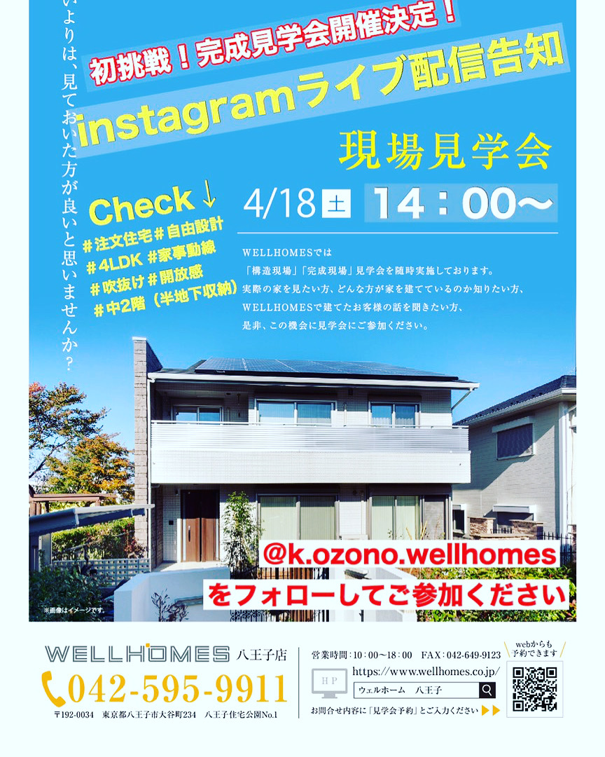 4/18㈯14:00~完成見学会 instagramライブ配信 開催決定!!